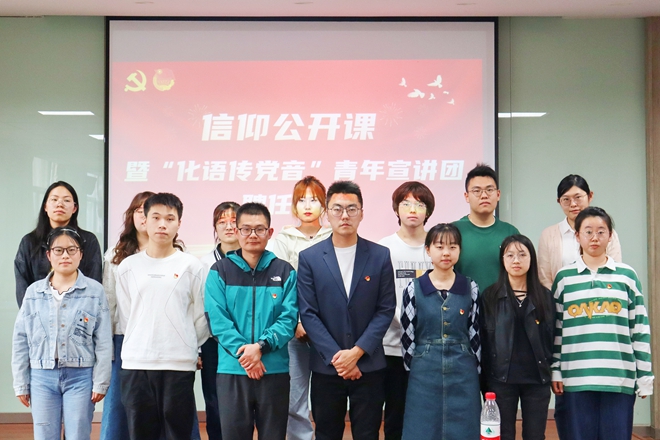 为深入学习宣传贯彻习近平新时代中国特色社会主义思想和党的二十大精神,5月10日下午,betway中国西汉姆联官网组织开展了信仰公开课暨“化语传党音”青年宣讲团聘任仪式。江南大学马克思主义学院副教授孙晨光受邀出席,化工学院分团委书记刘凡、化工学院党建工作辅导员杨璇,材料系学生党支部书记高静及青年宣讲团成员参与本次活动,活动由材料系学生党支部党员陈梦瑶主持。