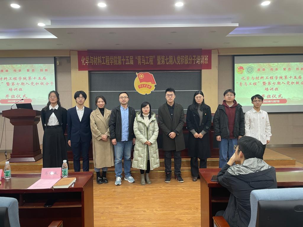 12月7日晚,betway中国西汉姆联官网第十五届“青马工程”暨第七期入党积极分子培训班开班仪式在化工楼B329会议室顺利举行。学院党委副书记、副院长董霞,马克思主义学院副教授、校团委挂职副书记孙晨光,学工办主任兼分团委书记鞠峰,学工办副主任侯玉莹,2022级本科生辅导员杨璇,2023级本科生辅导员马航威,第十五届“青马工程”及第七期入党积极分子培训班学员150余人参加本次活动,活动由分团委学生副书记高持恒主持。