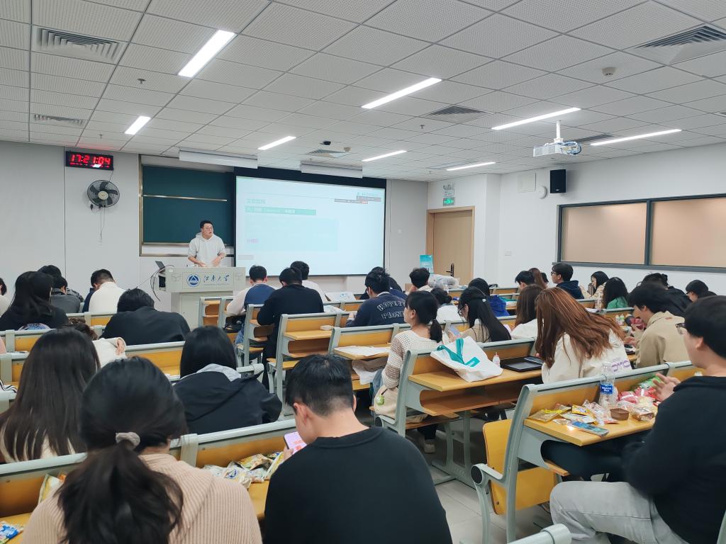 在“SCI论文分类与选题准备”环节,陈斌老师从研究方向和问题意识出发,结合工科论文的典型案例,讲解了如何确定具有创新性与可行性的选题,并提醒同学们注意避免常见误区。随后,他进入到“文献查找与写作工具”部分,逐步演示了如何高效检索相关文献,并具体讲解了论文标题、摘要、关键词和引言的写作技巧与常见规范。最后,陈老师聚焦于“SCI论文撰写、投稿与修改标准化流程”,从期刊选择、审稿意见回应,到修改与复议策略,进行了细致梳理。他特别指出,科研写作不仅是技术活,更是逻辑训练与学术表达能力的体现,鼓励同学们多看、多写、多改,在实践中不断提升。
