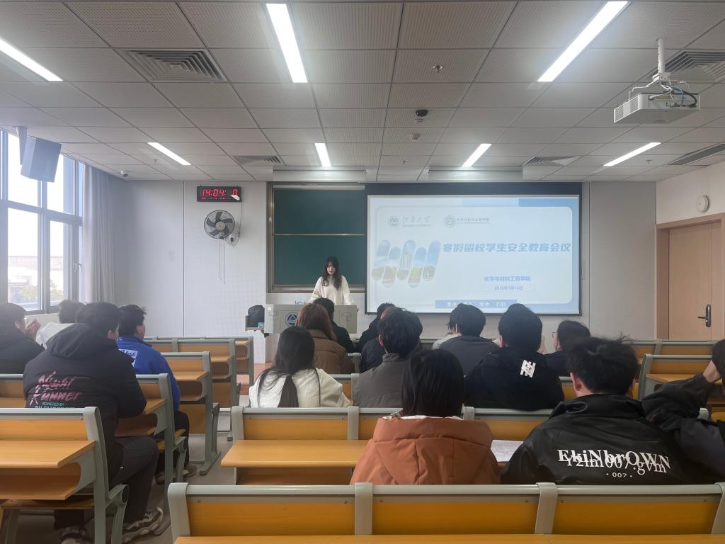会议紧扣“筑牢安全防线,护航平安寒假”核心主题,精准锚定寒假校园安全管理关键环节。鞠峰结合近期国内高校典型安全案例,从防火防盗、规范用电、防诈反诈、实验室安全等重点领域展开深入警示教育,着重强调留校学生需严格恪守学校各项管理制度,认真落实“离校报备”“晚归登记”等要求,同时细致提醒同学们关注极端天气应对、交通安全及出行防护等细节事项,引导大家时刻紧绷安全之弦。