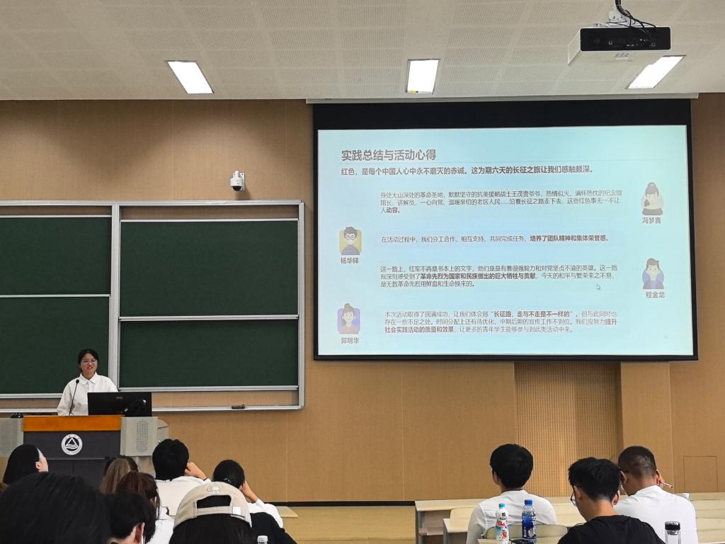 用脚步丈量土地,让青春在社会大课堂熠熠生辉。本次“实践归来话成长”我的青春故事报告会暨新生转型教育活动既是一次社会实践汇报会,展示了学院暑期社会实践成果和学生成长体会,又是针对新生的实践育人第一课,让全体新生对社会实践活动有了初步认知,了解社会实践活动组织策划实施的思路。接下来,学院将持续丰富、拓展社会实践平台,深化实践育人成效,希望越来越多的青年学子在社会实践的大舞台上挺膺担当、奋发有为,以昂扬的姿态追逐青春梦想,让青春在全面建设社会主义现代化国家的火热实践中绽放绚丽之花。