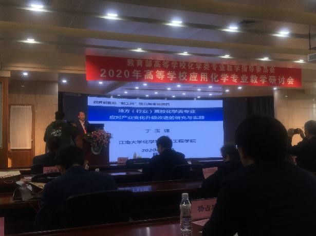 会上,朱亚先教授和张树永教授分别作了题为“化学类新工科专业研究与建设的基本思路”和“应用化学一流专业建设标准与要点”的主旨报告,为我国应用化学专业建设指明了方向。丁玉强教授作为教育部新工科首批研究与实践项目“地方(行业)高校化学类专业应对产业变化的升级改造研究和实践”执行负责人进行大会发言,他分享了新工科教改项目的组织和实施方式、剖析了调研问卷设置的科学性和覆盖面、多视角分析了调研数据和结论,并以江南大学应用化学专业等为例介绍了专业“新工科”改造成效和经验思考。