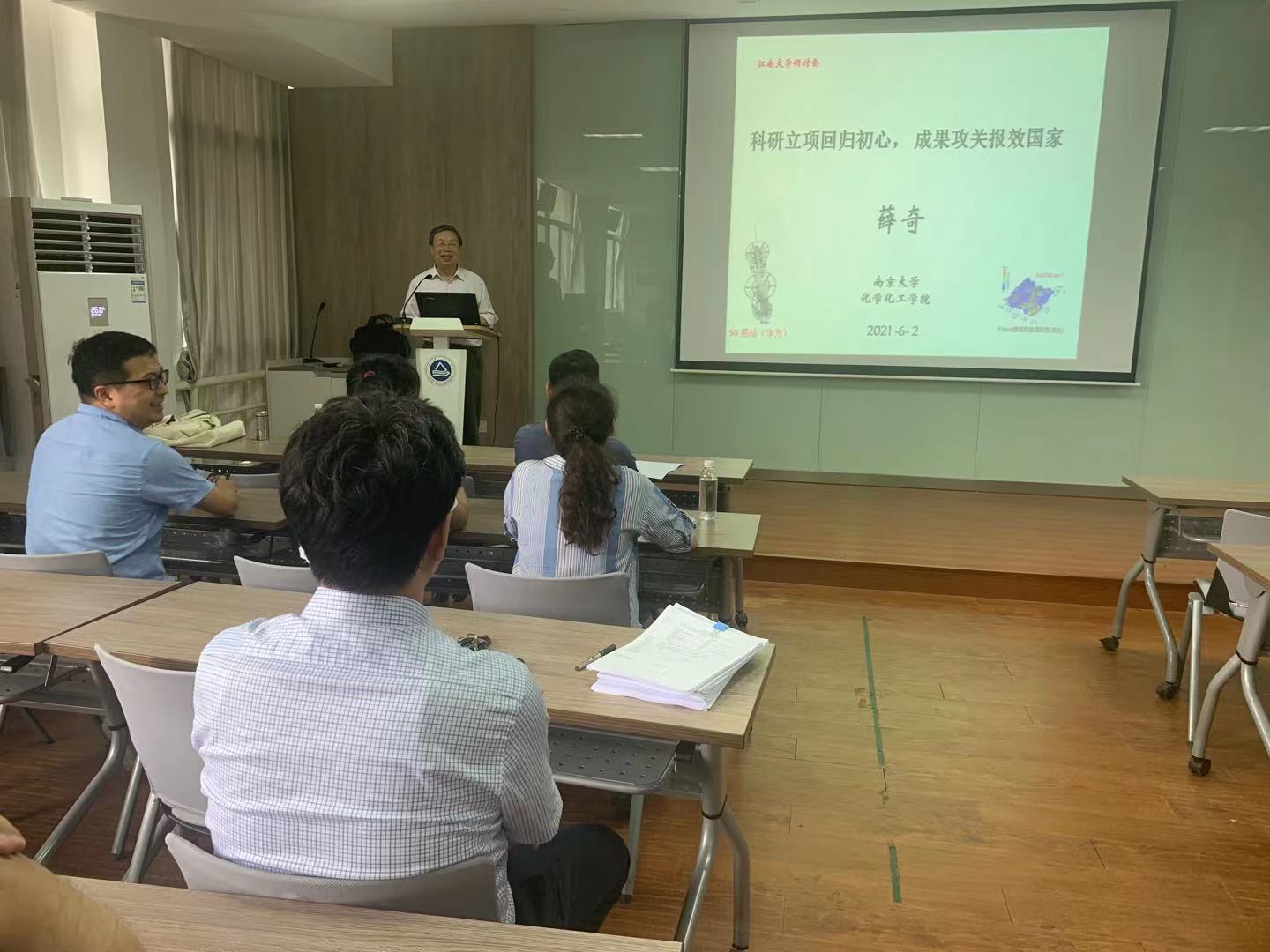 6月2日下午,南京大学化学化工学院薛奇教授应我院应化系党支部邀请来访交流,并讲授了题为“科研立项回归初心,攻关成果报效国家”的党课讲座,讲座由顾志国副院长主持,他对薛奇教授的来访表示热烈欢迎,我院师生党员参加此次活动。薛奇教授以自身的求学经历和知识分子入党故事开篇,结合自己及团队丰富的研究经历以及荣获国家自然科学奖、国家科技进步奖的卓越成果,就科研工作如何选题,做立意高远、紧扣或引领学科前沿的基础研究,或“接地气”、可上货架的具有竞争力的高质量应用研究,开展面向国民经济主战场的高水平创新研究工作进行了专题报告,勉励我们要怀揣家国情与梦,要有抓机遇、敢于担当的使命感,激励我们以昂扬姿态更好地投入教学科研工作,开展“顶天立地”的科学研究,以优异成绩迎接建党一百周年。