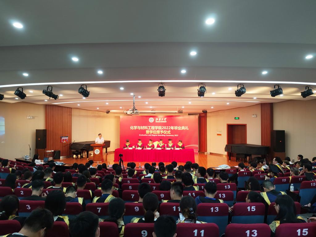 应化系系主任刘雪峰、材料系系主任罗静、化工系副主任钮腾飞共同表达了对全体毕业生们的期许,希望同学们今后用自己的努力与实际行动,践行“笃学尚行,止于至善”的校训。教师代表化工系蒋平平教授则告诫大家就业择业的重要性,他希望同学们“选对路,选好路”,鼓励同学们选择化工这一对国家战略发展有重要基础、且大有可为的行业,与国家共命运同进步!