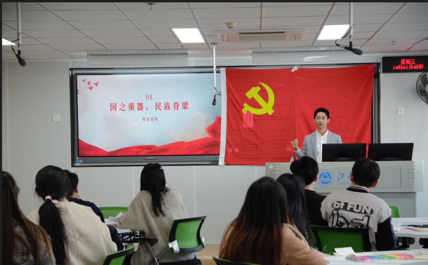活动伊始,与会人员集体观看影片《国之重器,民族脊梁》,学习科教兴国战略的诞生背景与发展历程以及科学家前辈们艰苦奋斗、勇攀高峰的先进事迹。
