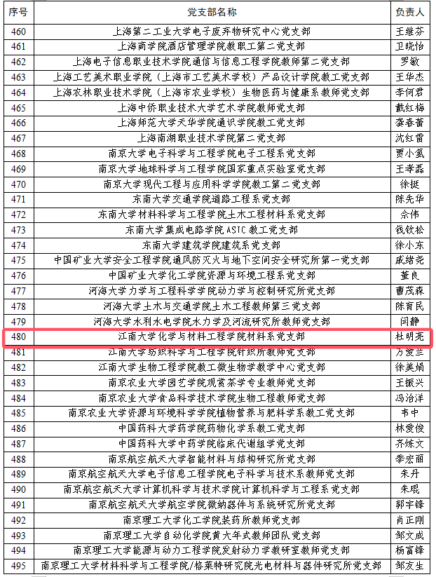 材料系党支部入选首批全国高校“双带头人”教师党支部书记“强国行”专项行动团队;化工系党支部入选第二批全省样板党支部。