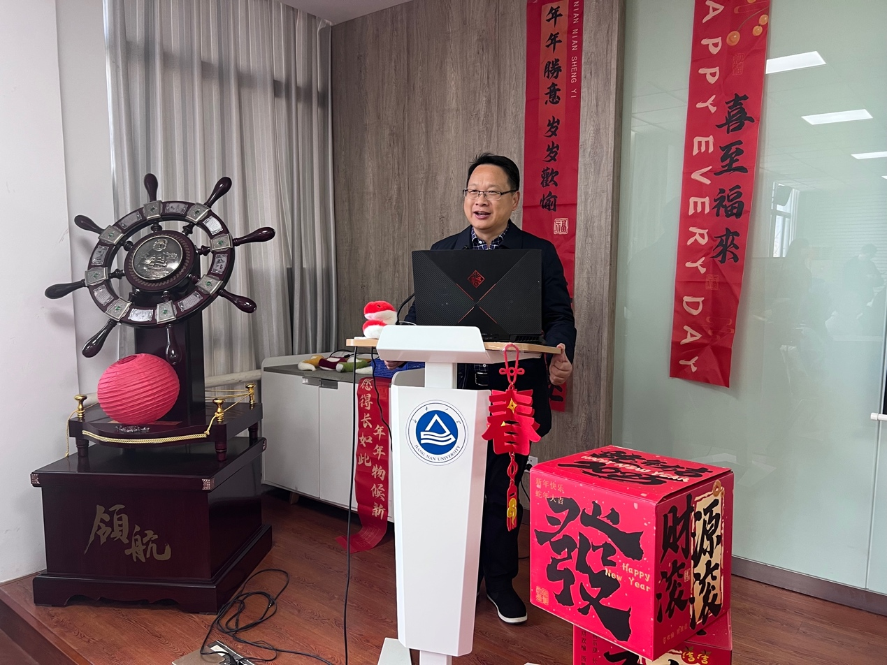 本次活动由学院研究生会主席程子涵主持。活动伊始,潘庆伟书记致辞,他向留校学生致以诚挚的新年祝福,高度赞扬了同学们投身科研的专注与热忱。潘书记回顾了过去一年学院在科研、教学等方面取得的斐然成绩,展望未来,学院将继续勇攀高峰,向着更高目标奋勇迈进。他还鼓励同学们在科研道路上要持之以恒、脚踏实地,努力实现自身价值。
