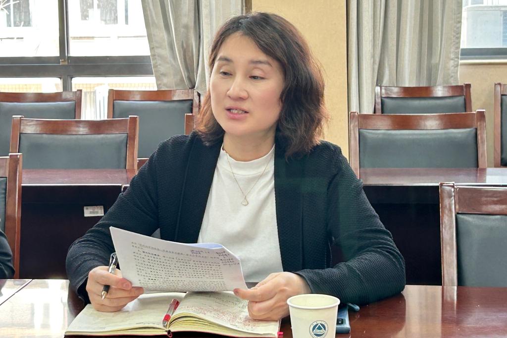 潘庆伟代表学院对李佳敏一行的到访表示欢迎,并对校党委宣传部、融媒体中心长期以来给予学院的支持和帮助表示感谢。围绕本次调研内容,从学院“第一议题”制度落实情况、学院党委中心组学习开展情况、意识形态阵地建设及学院网站管理、立德树人工作经验做法、年度宣传亮点与方向等方面进行了全面而细致的介绍,并对学院在宣传思想文化工作中遇到的困难和问题进行了说明。董霞就学院网络思政工作亮点和特色进行了汇报,并围绕特色思政品牌打造等工作进行展望。