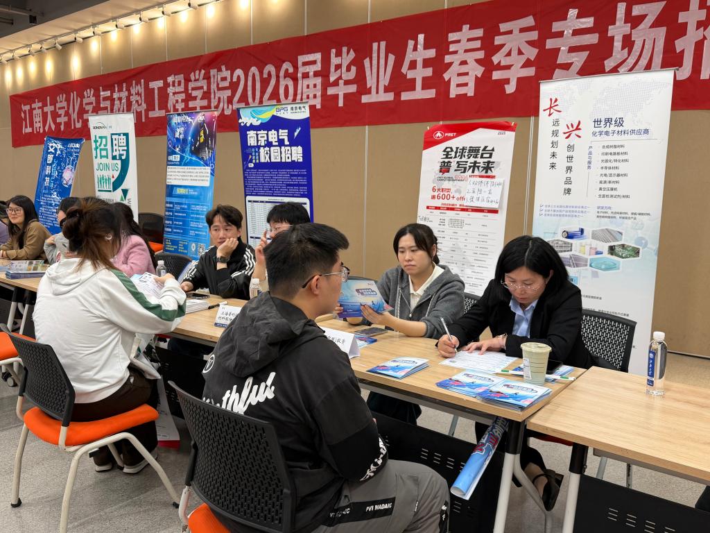 本次招聘会聚焦新材料、精细化工、新能源、生物医药等国家战略性新兴产业,汇聚了72家行业头部单位及泰州市人社局招聘团,中天科技、杭州瑞江、长兴投资等一众知名企业悉数到场,为毕业生提供了2000+优质就业岗位,覆盖材料科学与工程、化学工程与工艺、高分子材料与工程、应用化学等学院核心专业,实现了岗位供给与人才需求的精准匹配。