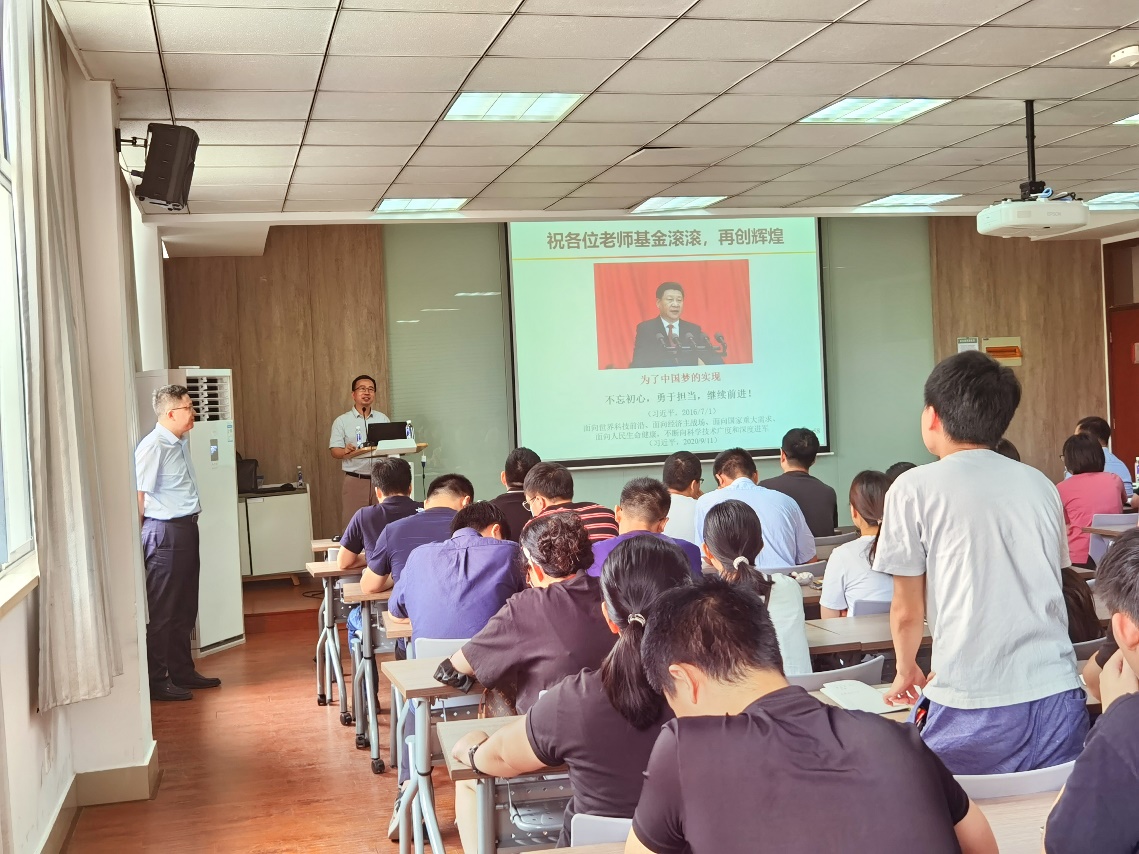 报告会上,东为富院长对杜建忠教授进行了介绍,并对杜教授的来访致以热烈的欢迎和衷心的感谢。杜教授首先介绍了国家杰出青年科学基金和优秀青年科学基金项目,指出杰出青年项目是十年磨一剑的学术积累,深入分析了时代需要什么样的青年学者。接着,杜教授重点介绍了国家自然科学基金的申报工作,全面细致地分析了国家自然科学基金的特点、评阅流程、撰写要点的建议,最后对申报过程中出现的常见问题进行了深入的剖析。杜教授高瞻远瞩的视野和具有丰富内涵的报告内容,使得在场教师和研究生受益匪浅,感受颇深。