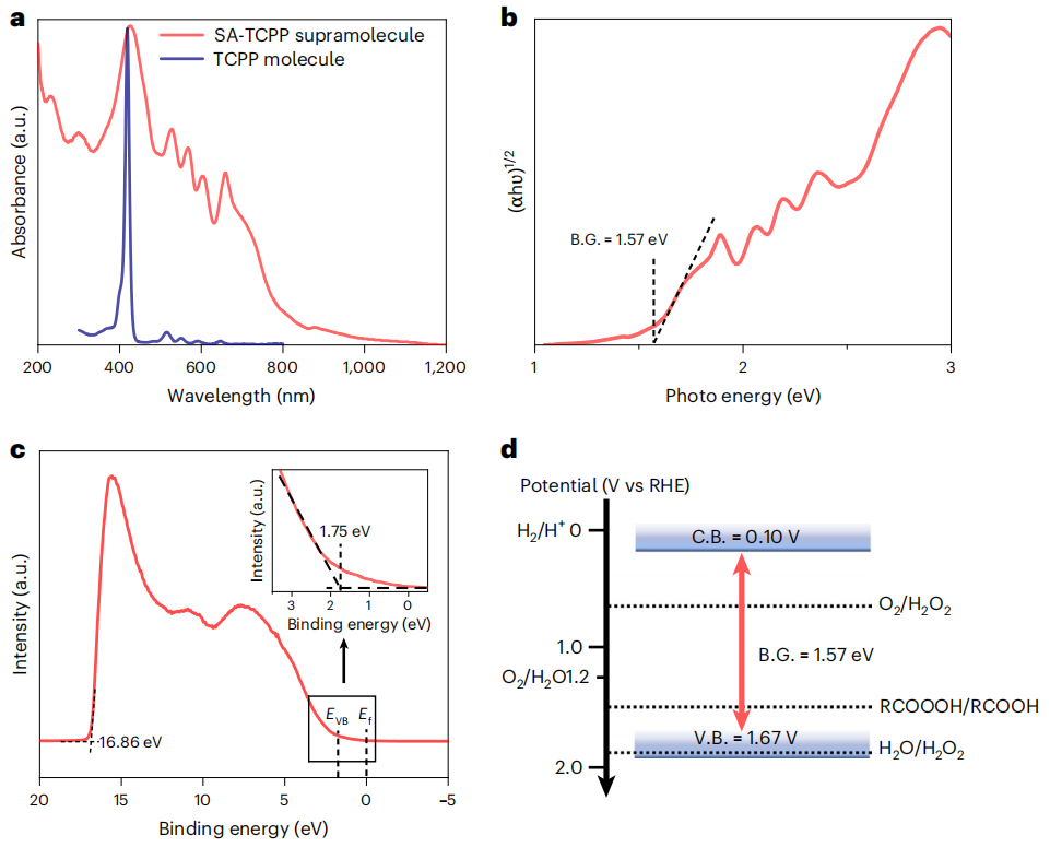 图2:SA-TCPP超分子光催化剂的能带结构。