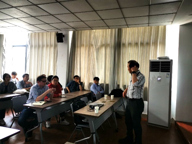 Tatsuo Kaneko教授报告主题为“Recent development of Bio-based Plastic and its bright future”。他着重介绍了生物基塑料的最新发展及其光明前景。分为以下几个部分:1、简单清晰地介绍了生物基聚合物的可控降解以及首次发现的水中的光化学反应赋予高分子材料光引发水解的能力;2、重点介绍了衣康酸基生物尼龙,基于衣康酸和二胺,通过改变聚合方法,开创了“盐类单体的本体聚合方法”,可以利用衣康酸的双羧基和双键形成吡咯烷酮环,从而得到衣康酸衍生的耐高温生物尼龙;3、还介绍了几种高性能生物塑料,其力学性能可与聚甲基丙烯酸甲酯、聚丙烯等相媲美,在生物塑料的发展具有一定的引领作用。Tatsuo Kaneko教授与钟显铸博士的报告非常详实,生动丰富,令人耳目一新,引起了在座师生的积极交流和讨论,师生们纷纷表示受益匪浅。