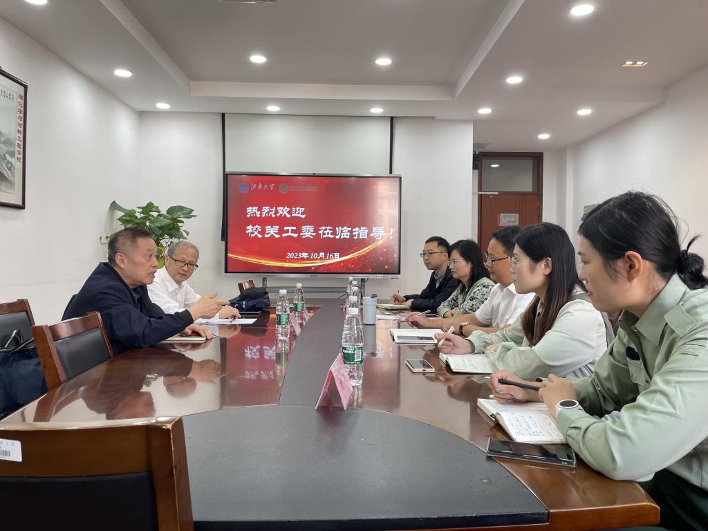 潘庆伟对学校关工委莅临指导表示热烈欢迎,衷心感谢校关工委对我院工作的充分肯定,今后将进一步围绕“立德树人”根本任务,向优质化建设目标迈进,更好的服务学科建设、青年教师培养及大学生成长成才工作。随后,与会人员从学校关工委工作要点出发,以学院关工委优质化建设为切入点进行了讨论。
