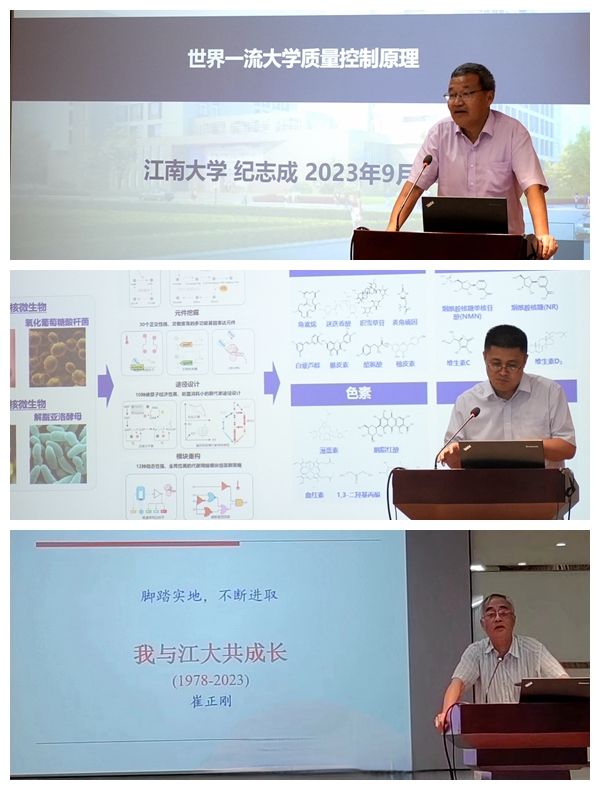 本次“金典讲习”活动围绕“大师引领”“朋辈激励”“工匠传承”等三方面展开。原副校长、国家级人才项目获得者纪志成教授作题为《世界一流大学质量控制原理》的报告。他从“构建一流学生的培养机制”“构建一流课程的建设机制”“构建一流成果的产出机制”“构建一流教师的发展机制”“构建一流治理的保障机制”等五个方面,结合个人研究思考和大量国内外案例,对一流大学质量控制要点进行了详细解读。他勉励青年教师深入思考,明确个人目标,挖掘自身潜能,在工作中收获成长和进步。未来食品科学中心副主任、教育部国家级人才项目入选者周景文教授结合在江南大学十四年的工作经历,分享了在教书育人、科学研究等方面的心得体会。他强调,青年教师要热爱教师岗位、做好本职工作;确定自身定位,梳理发展路线;发挥各方资源,加强自身建设;利用有限资源,聚焦科研主线;保持良好心态,屡败屡战屡胜,在团结、协作、共赢中实现自我价值。学院退休教师、博士生导师崔正刚教授以“脚踏实地,不断进取”为主题,深情讲述了与江南大学共成长的四十五年。他回望自己的漫漫求学路,回顾了在立德树人、科学研究的道路上,初心不改、矢志不渝、勇担使命的奋斗历程。他强调,青年教师要学无止境、终身学习,学业有专攻,跟踪前沿、有所创造,加强团队建设,在继承中创新,在创新中传承。