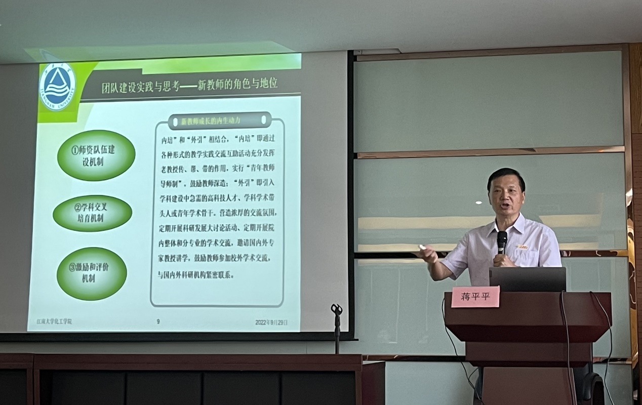 化工学院党委书记潘庆伟做活动总结,进一步深化了本次活动的主题。他提出,青年教师是是力量、是希望、是珍宝,是学院启拓新事业,建设新校区,更上新台阶的重要力量。促进青年教师又好又快地发展是学院工作的重中之重。一直以来化工学院对青年教师的成长发展非常关心和关注,希望通过此类青年教师交流研讨活动,促进学科交叉融合,助力青年教师成长成才,在人才培养、科学研究、社会服务和行业影响等方面充分发挥作用,为全面提升学院核心竞争力发挥更大贡献。