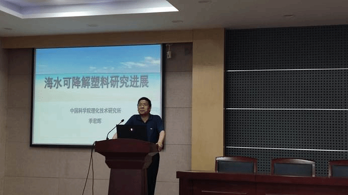 随后,季君晖研究员以“海水降解塑料研究进展”为题,从塑料的诞生与发展切入,讲解了塑料与人类生活的密切关系。系统介绍了海洋塑料污染的问题以及微塑料的危害,表达了消除海洋微塑料的必要性。季君晖研究员报告中不断引用实例,娓娓道来,引人入胜。随后从内在结构性能因素和外在环境因素两方面分析了生物降解过程的关键影响因素,引出了新型海水降解共聚酯的设计合成以及性能调控并且针对海洋微塑料问题提出了有效的解决方法。