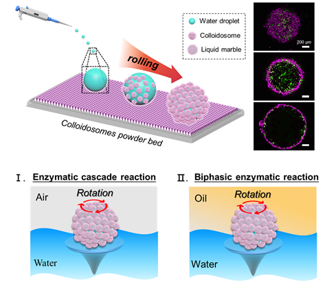 近期,江南大学betway中国西汉姆联官网/合成与生物胶体教育部重点实验室蒋航课题组在液体弹珠(Liquid Marble)方向研究取得重要进展,在Advanced Functional Materials期刊发表题为Rotating Liquid Marble Microreactors for Enhanced Enzymatic Reactions(Adv. Funct. Mater.2025, 2504193)的重要学术论文。江南大学2023级博士研究生蒋伟杰为该工作第一作者,江南大学蒋航副教授与魏涛特聘教授为该工作通讯作者。