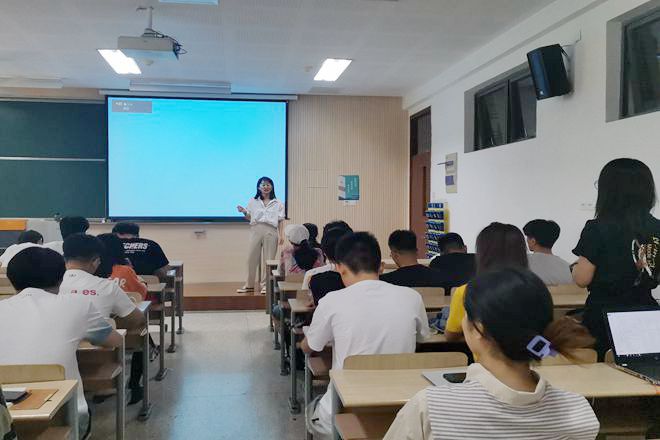 随后,宋超慧就一些求职技巧与大家做了分享。从简历的撰写到面试的技巧,同学们都在宋超慧的分享中受益匪浅。她向大家建议到,面试就是演讲,在面试时要做到自信、讲话有条理、突出重点和亮点,多“练习”是提升的最好途径。在最后的提问环节,同学们踊跃发言。当有同学问到如何清楚自己适合哪个行业时,宋超慧认为,“做总比讲好”,实践出真知。如果想要知道自己是否适合某个行业,就要去实习,去实际地接触它,只有这样,对职业的感受才是最真实的。