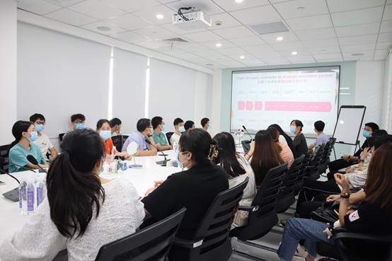 在莹特丽公司,同学们重点就自己所关心的研发问题进行了积极的提问,如“卸妆水、油水分离的卸妆油、单纯的卸妆油各自的优缺点,卸妆产品的演变历史”“表面活性剂和纳米颗粒共同稳定乳液在化妆品领域的应用现状”“二氧化钛在防晒配方中油脂添加量和使用油腻厚重感如何解决”“Pickering乳液在实际生产中是否有应用”“学校中科研工作和公司中工作的不同之处,化妆品研发的工作内容”等,我院校友、研发部经理张杰结合自己10余年的工作经验向同学们作了详细的介绍,张杰校友深厚的技术实践能力和理论功底得到了同学们的高度认可,同时也极大促进和提高了同学们今后继续从事日化行业、投身日化研究的动力和信心。