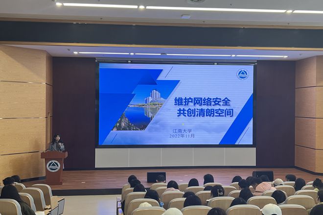 为深入贯彻党的二十大精神,引导学生坚持总体国家安全观,树立大安全观理念,提升学生的网络安全意识和安全防护技能,营造风清气正的网络环境,2022年11月20日,betway中国西汉姆联官网于江南大学(东氿校区)清源楼A101报告厅开展“维护网络安全,共创清朗空间”主题教育活动,2022级全体研究生参与本次活动。