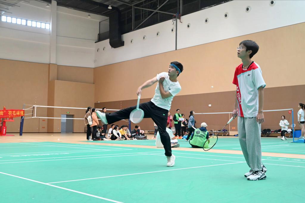 十二月已是寒气袭人,但羽毛球场内的的参赛选手们摩拳擦掌,精神抖擞。比赛过程中,每个人的目光随球起球落。一次次挥拍伴随着清脆的响声,如同激昂的鼓点;一次次精彩的杀球扣球,牵动着每个人的心弦。