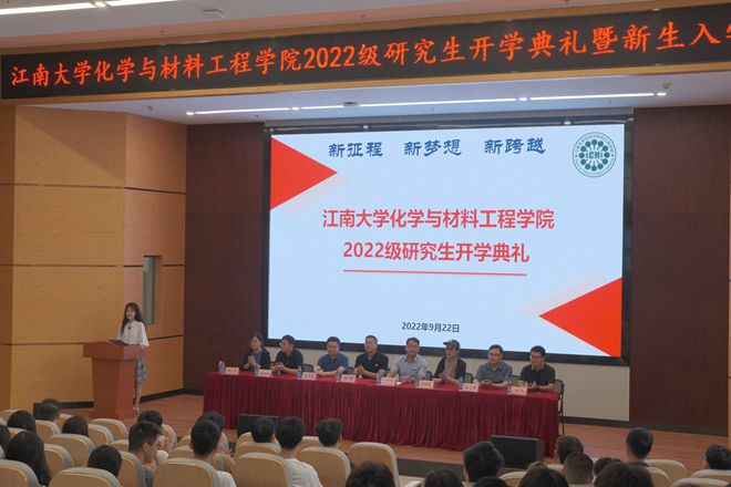 在老生代表发言环节中,2021级材料工程专业,化工学院研究生会主席张锐同学以从迷茫到逐渐确定人生目标的自身经历,来激励同学们不畏艰难,脚踏实地,砥砺前行。紧接着,在新生代表发言环节,2022级材料工程专业新生丁奕丹呼吁同学们乘“院士之乡”的东风,赓续前人思想,开拓新的道路,静心于学问,以优异的科研成果助力江南大学东氿校区的建设。