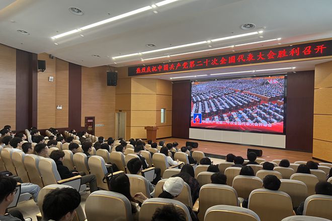 10月16日上午,中国共产党第二十次全国代表大会在人民大会堂胜利开幕,我院师生高度关注,通过线上、线下集中等多种方式收听收看大会开幕会。学院党委书记潘庆伟,学院老领导刘玉、王剑星,教师代表陈明清教授、刘晓亚教授,前民进江南大学基层委员会主委、前无锡市政协常委龚雁教授,与东氿校区师生党员、积极分子、学生干部共同收看开幕盛况。学院党委副书记、副院长田卫平,副院长董玉明在蠡湖校区化工楼A310、A316会议室与学生党员热议大会报告,分享感想心得。