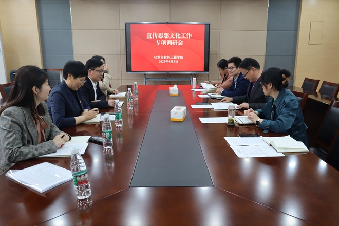 4月3日下午,党委宣传部部长李佳敏、副部长胡振宇一行到我院开展宣传思想文化工作专项调研。学院党委书记潘庆伟、党委副书记、副院长田卫平、专职组织员陆雪英、学工办主任、分团委书记刘凡及辅导员高静参与调研交流。