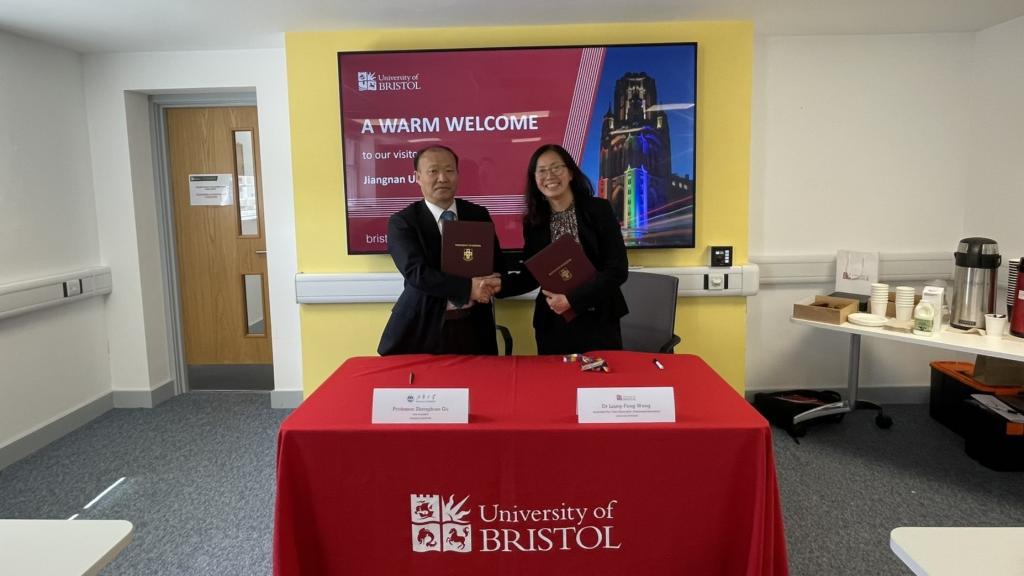 双方回顾了近年来在学术交流和学生联合培养等方面的合作基础,并签署了江南大学与布里斯托大学之间学生联培、学者互访、学术交流等全面合作协议,协议重点包括“3.5+0.5+1”本硕双学位一体化联合培养项目(即学生在江南大学学习3.5年,然后至布里斯托大学学习(0.5+1)年,可分别申请江南大学学士学位和布里斯托大学硕士学位),该项目面向化工学院应用化学、化学工程与工艺、高分子材料与工程等三个本科专业招生。协议明确了学生联培模式、入学条件、学位授予、学费优惠、保障措施等方面的内容,首批学生有望于2025年1月赴英学习。