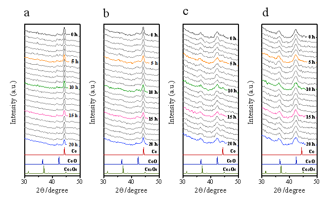 图1.反应条件下(240°C, 1MPa, H2/CO =2)的原位X射线衍射(In situ XRD)图谱