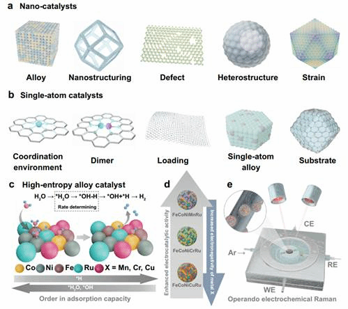 图1 所设计的纳米催化剂、单原子催化剂和高熵合金催化剂的概念说明