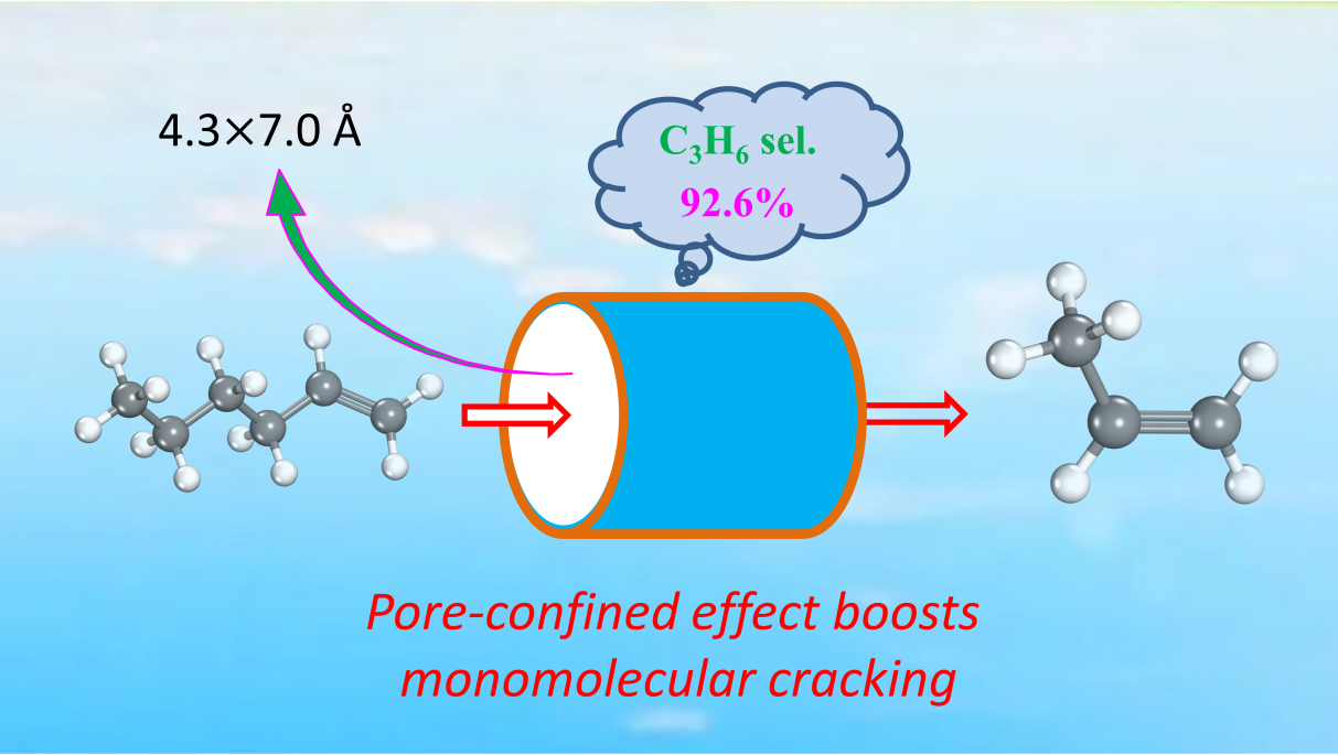 图1. SAPO-41分子筛中孔椭圆直形孔道限域催化1-己烯裂解高效制丙烯示意图