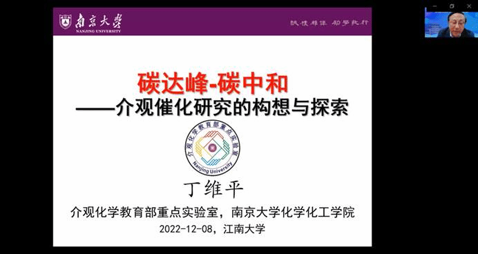 2022年12月8日,由江南大学、中国感光学会光催化专业委员会设立的“碳达峰碳中和太湖论坛”第三期学术报告会顺利在我校举行。大连理工大学郭新闻教授和南京大学丁维平教授应邀出席,中国感光学会副理事长、光催化专业委员会主任、清华大学朱永法教授担任主持。第三期报告会采用线上线下结合的方式,在我校蠡湖校区和宜兴研究生院分别设立集中会场,betway中国西汉姆联官网院长东为富教授、副院长董玉明教授以及相关师生共计300多人参加。