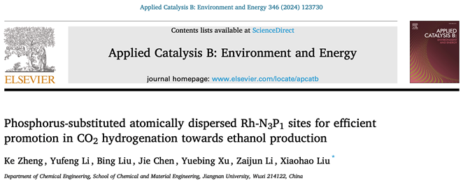 近日,江南大学化工学院刘小浩教授团队在构建P-Rh位对(Site Pair)活性中心高效催化CO2加氢制乙醇的研究工作中取得重要进展,这一研究成果在催化领域权威期刊《Applied Catalysis B: Environment and Energy上发表。该论文化工学院博士研究生郑珂为第一作者,刘小浩教授为通讯作者。