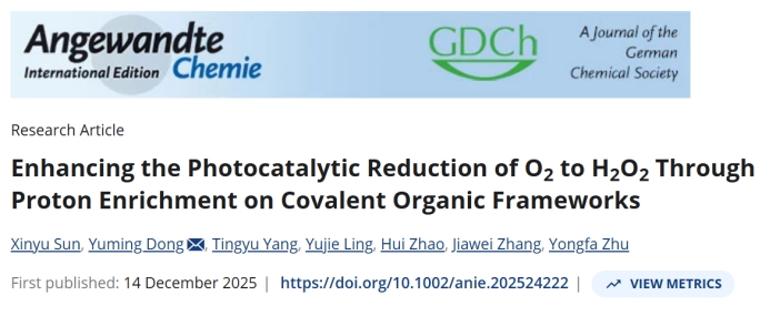 近日,我校betway中国西汉姆联官网董玉明教授在光合成双氧水领域取得突破性进展,研究成果以“Enhancing the Photocatalytic Reduction of O2to H2O2Through Proton Enrichment on Covalent Organic Frameworks”为题发表在《Angewandte Chemie International Edition》上(DOI:10.1002/anie.202524222)。论文第一作者为博土研究生孙新宇,通讯作者为董玉明教授。