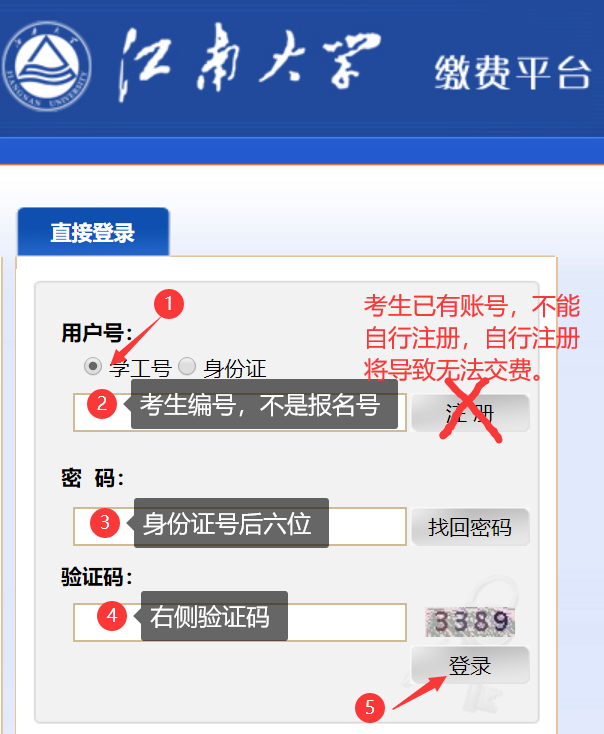 缴费说明:进入复试考生在学院规定的时间内登录“江南大学缴费平台”交纳复试费用,复试收费标准:80元/生。缴费网址:http://pay.jiangnan.edu.cn/payment/。登录账号为准考证上的考生编号,登录密码为身份证后六位(友情提醒:考生账号已开通,切勿自行注册)。按照提示交费(使用网银),并打印或截图保存付费凭证。
