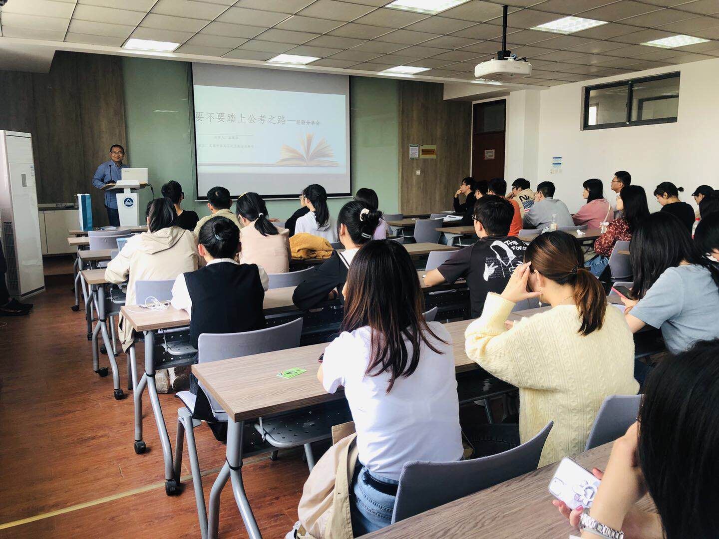 10月11日下午,betway中国西汉姆联官网在化工楼A316成功举办了“要不要踏上公考之路”主题讲座。此次讲座由2019届毕业生曲寒洛为大家进行经验分享,学院分团委书记任增亮老师及学院2019级、2018级研究生40余人参加。